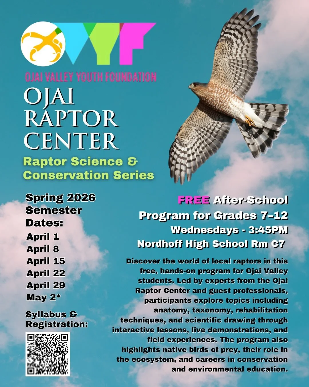 Ojai Raptor Center receives no ongoing government funding. Your support provides urgent medical care for injured and orphaned wildlife, maintains our facility, and delivers hands-on environmental education to local youth.