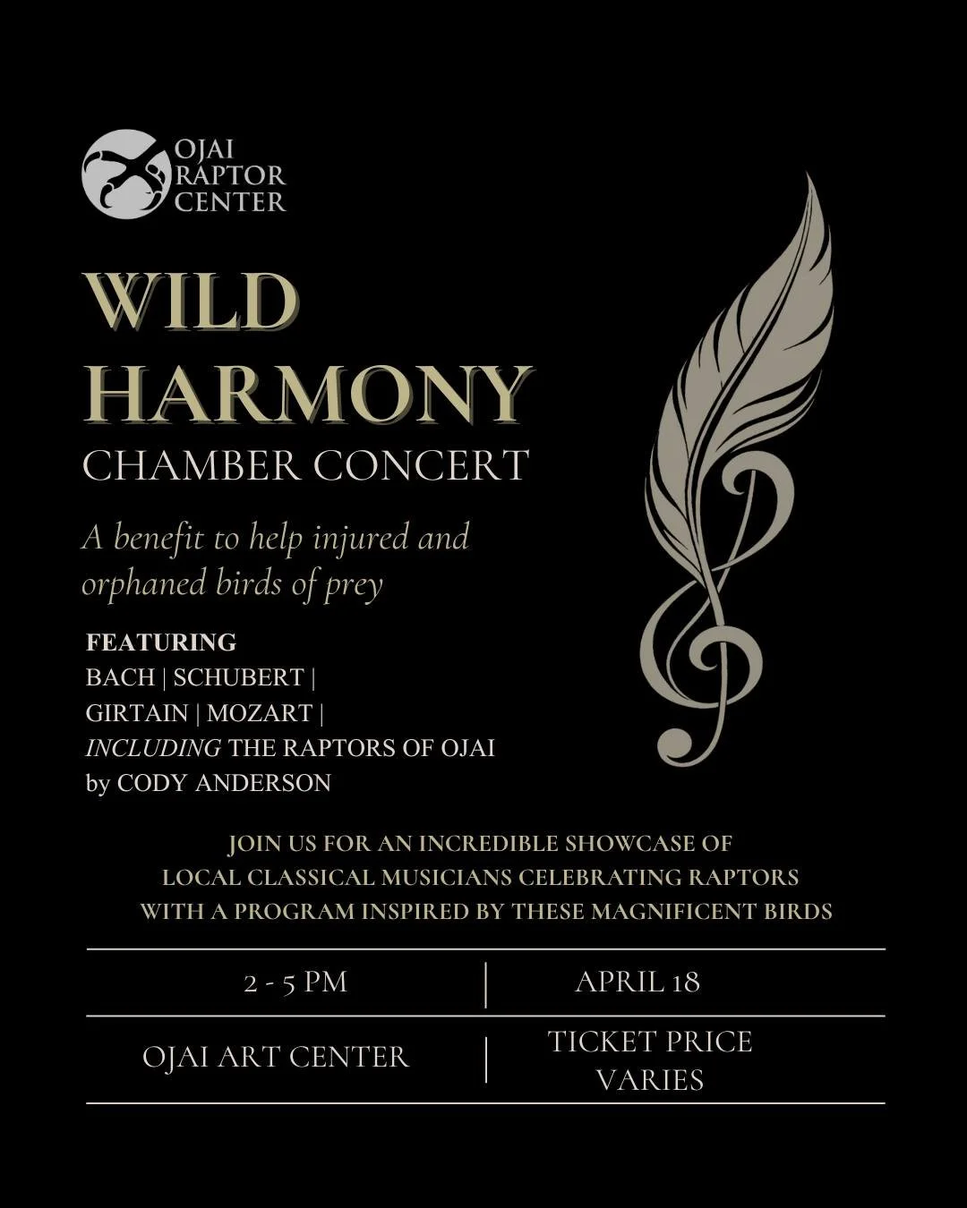 Join us for Wild Harmony - a melodic fundraiser for the raptors! Each spring, we care for hundreds of baby raptors, many of whom are orphaned, injured, or displaced. This benefit concert raises vital funds to help these wild birds grow strong, learn to fly, and return to the skies where they belong. Join us for an unforgettable concert to support their journey back to the skies!